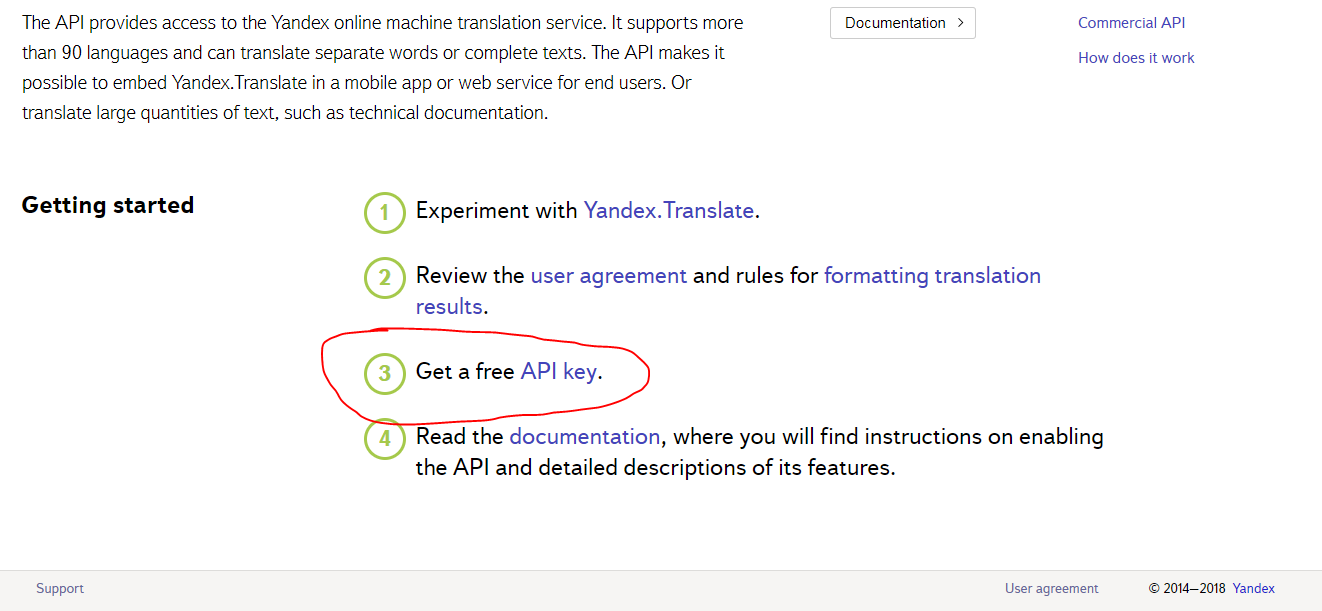 Now drag and drop Yandex Translate extension from Media and you have to create an account on Yandex Translate to get the API key. So go to this site and create an account. Now after creating the account scroll down and see Get a free API Key click there