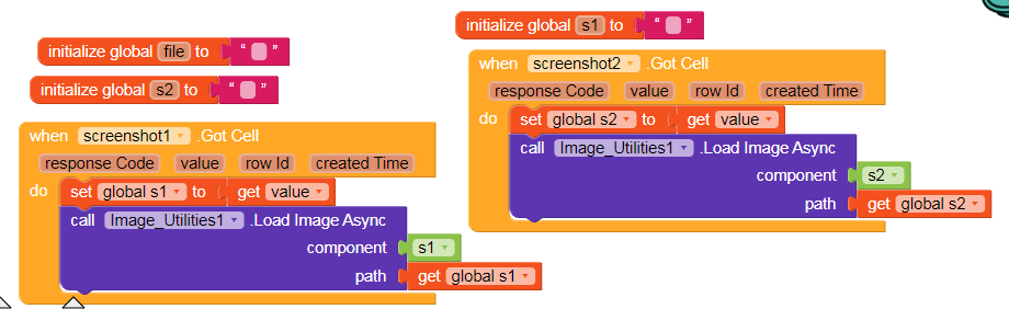First when Screen Initialize you have to call DeepHost’s Registered then call Registered Confirmation to Confirm your Mobile Number and from here you can start rest blocks, So when Confirmed I created Spreadsheet 1 Get Column, Column Name Image. And also you have to create two global variables image and name
