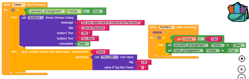 this block will work when an user click on a Category and it will save startvalue as Category name and go to Book Screen