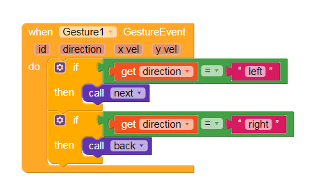 just a simple block, when you finger move to left direction then it will go next and when at right then it will go to previous